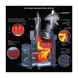 Банные печи с топкой из чугуна выдерживают высокие тепловые нагрузки, не выделяют вредных веществ и запахов при нагреве и обладают повышенной долговечностью. Чугун является экономичным и достаточно долговечным материалом для деталей, которые подвержены воздействию горячих агрессивных газов, окислению, термическим деформациям и растрескиванию. Чугун обладает хорошей стойкостью к длительному воздействию высоких температур, а за счет высокой теплоемкости хорошо принимает и отдает тепло.