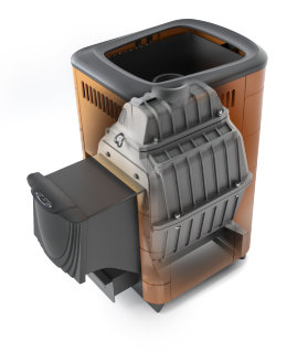 - Модульность — возможность усовершенствования печи с помощью дополнительных опций (выносной бак, теплообменник, модуль закрытой каменки, парообразователь, конвектор или экономайзер на трубу дымохода и др.)