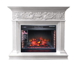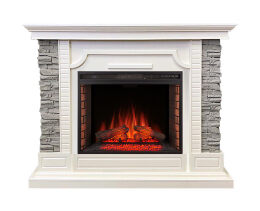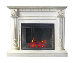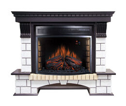 Реалистичная 3D имитация пламени выполнена с помощью светодиодных дров в виде ярко горящего пламени. Есть возможность регулировки яркости пламени. Внутри очага сделана имитация кирпичной кладки. Управление осуществляется с электронного дисплея и пульта ДУ. Очаг оборудован звуковой имитацией потрескивания огня в камине.