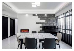 В качестве внутреннего декора используются стильные прозрачные кристаллы и разноцветная галька. Подсветку кристаллов и яркость пламени можно регулировать – доступно 4 возможных варианта. Модель дополнена звуковой имитацией потрескивания дров.