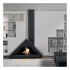 Фронтальный камин со стеклом. Вертикальная труба справа.