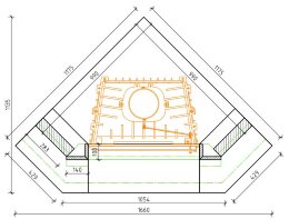 R-030 На фото камин представлен из ракушекчник Du Gard, деревянные полки. Опция -желтые швы.