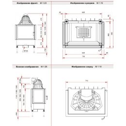 Облицовка из талькомагнезита толщиной 50 - 100 мм. Закладные металлические полосы для сборки облицовки камина. Металлические решетки для теплоподачи.