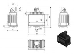 Во всех модификациях серии Истра предполагается установка каминной топки Ладья 700 (11 кВт) или Chazelles D70 (9,5 кВт). Ее мощности хватит для отопления дома площадью 100м2 (топка не входит в комплект!).
