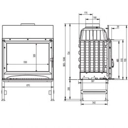 Данная облицовка имеет пристенное расположение. Печь устанавливают почти в упор к стене. Верхний и нижний бортик шириной около 3 см создают зазор, необходимый для техники безопасности. Тыльную сторону печи прикрывает лист черной стали. На левой и правой стенках печи есть по два отверстия для отвода тепла. Холодный воздух поднимается с пола, разогревается около топочной камеры и выходит через отверстия в боковых стенках печи.