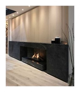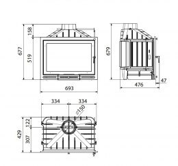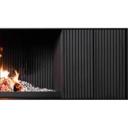 Данная облицовка имеет пристенное расположение. Печь устанавливают почти в упор к стене. Верхний и нижний бортик шириной около 3 см создают зазор, необходимый для техники безопасности. Тыльную сторону печи прикрывает лист черной стали. На левой и правой стенках печи есть по два отверстия для отвода тепла. Холодный воздух поднимается с пола, разогревается около топочной камеры и выходит через отверстия в боковых стенках печи.