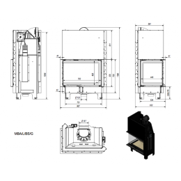 Данная облицовка имеет пристенное расположение. Тыльная часть печи прикрыта листом из черной стали, со стороны его не видно. Вся остальная поверхность покрыта облицовкой.
