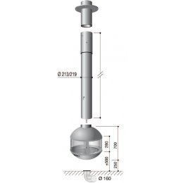 Стеклянные перегородки оснащены зеркальной поверхностью и выдерживают термовоздействие до 750 градусов по Цельсию. Поступление потока первичного воздуха осуществляется сквозь нижний заборный патрубок, который находится внутри опоры очага. Внизу камина располагаются регулирующие устройства для первичного и вторичного воздуха. Твердые остатки горения собираются под колосниковой решеткой в зольнике.