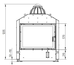 Топка оборудована чугунным дымосборником диаметром 180 мм. Жаростойкое стекло топки плоское, чистоту во время горения поддерживает система 'Чистое стекло'. Ширина дверцы 650 мм, высота - 450 мм. Дверца открывается влево/вправо (дверки топки могут быть легко переустановлены из стандартного открывания влево в открывание вправо и наоборот). Благодаря системе плотного закрытия дверей достигается полная герметичность топки.