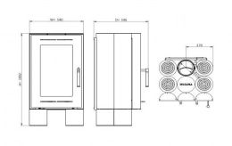 Топка оборудована чугунным дымосборником диаметром 180 мм. Жаростойкое стекло топки плоское, чистоту во время горения поддерживает система 'Чистое стекло'. Ширина дверцы 650 мм, высота - 510 мм. Дверца открывается влево/вправо (дверки топки могут быть легко переустановлены из стандартного открывания влево в открывание вправо и наоборот). Благодаря системе плотного закрытия дверей достигается полная герметичность топки.
