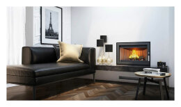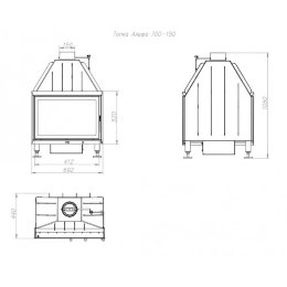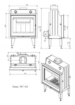 Топка изготовлена из стали высокого качества. Топочная камера футерована шамотом. Стекло прямое. Дверка открывается в бок. В топке предусмотрена встроенная шиберная заслонка. Высокий дымосборник обеспечивает дополнительный дожиг дымовых газов, что повышает КПД топки и теплоотдачу. За счет стеклокерамики и герметичности дверки обогрев происходит в три раза выше, чем в открытом очаге. С помощью системы «чистое стекло» стекло всегда остается чистым.
