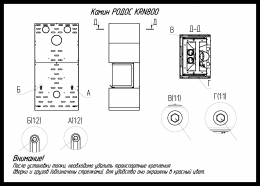 Цельносварной стальной корпус, футерованный литьевым шамотом. Регулируемая подача первичного воздуха в камеру сгорания 'Printing' по периметру стекла.