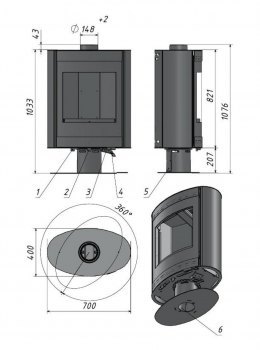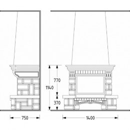 Глубина: 600 mmШирина: 695 mmВысота фасада: 525 mmМощность 14кВтОбъем отапливаемого помещения 280 м3Диаметр выхода пaтрубка: 180 mmВес 120 кгБоковое открывание дверцы, латунный фасад, панорамное стеклоКПД более 75%Производство и сборка – Франция