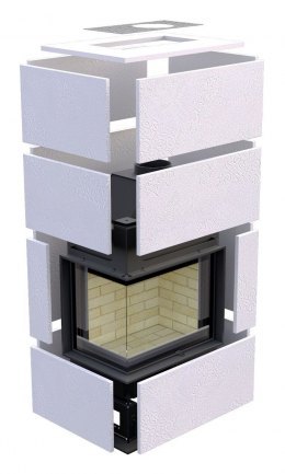 Удобная регулировка подачи воздуха в камеру сгорания. Патрубок подачи воздуха находится внизу топки, имеет цилиндрическую форму. Это дает возможность присоединения трубы 125 мм с подачей свежего воздуха с улицы или другого помещения. Топка имеет тройную систему подачи воздуха в камеру сгорания. Первичный воздух подается по всей ширине топки через щель в полосе, расположенной на передней части камина. Подача вторичного воздуха в камеру сгорания осуществляется через отверстие под задней стенкой, за счет этого получаем снижение выбросов вредных веществ в окружающую среду. Данная система дожига газов повышает эффективность топки. Третья подача воздуха — это воздушная завеса, называется системой чистого стекла, которая не дает стеклокерамическому окну загрязняться продуктами горения. Воздух подается с помощью специальных каналов по бокам топки и равномерно распределяется на стекло по всей ширине.