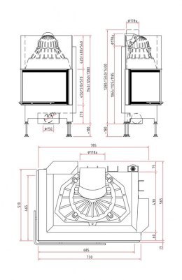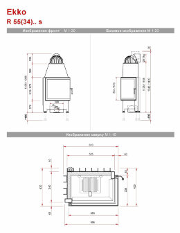 Каминная топка Schmid Ekko 4557 для угловых каминов, с цельным, угловым стеклом. Дверца топки открывается в сторону.