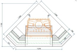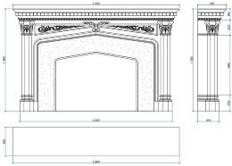 Угловая каминная топка с боковым стеклом справа. Стекло составное из двух частей. За доплату топку можно заказать с цельногнутым угловым стеклом. Ширина дверной рамки 100 см. Ширина бокового стекла 45 см. Высота двери 57 см. Вся дверца топки открывается вверх, а также вбок для чистки стекла.