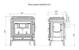 В стандартную комплектацию входит:Сама топка без подъема дверки вверхРегулируемая шиберная заслонкаУмное устройство для открытия 'шибера'Зольный ящик (внутри топки)Задняя стенка 'мельница'Регулировка подачи воздухаРассекатель пламени
