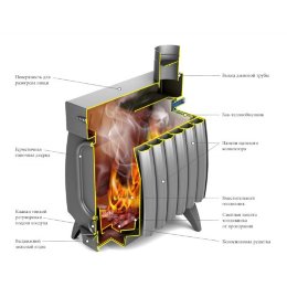 Совершенных теплотехнических характеристик «Огонь-батареи» удалось достичь при помощи компьютерного математического моделирования. Все детали устройства изготовлены с применением цифровых технологий, что позволяет свести к минимуму негативное влияние человеческого фактора на качество сборки. Элегантный внешний вид печи позволяет установить ее в любом современном жилом помещении. На видимых поверхностях печи нет ни одного сварного шва. Самый вместительный топливник в своем классе позволяет загрузить в печь максимальное количество дров для длительного непрерывного горения. Сменная защита от прогорания предохраняет нижнюю часть топливника печи в месте скопления горячих углей. При необходимости защита легко меняется на новую в домашних условиях. Герметичный зольник с замком исключает неконтролируемый подсос воздуха на колосник. Тонкая регулировка интенсивности горения позволяет бесступенчато выбирать любой режим горения — от интенсивного до полного затухания печи.
