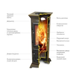 Особенности и преимуществаБлагодаря компьютерному математическому моделированию были получены оптимальные теплотехнические характеристикиСтильный современный дизайн печи прекрасно вписывается практически в любой интерьерНа чугунной конфорке с двумя кольцами разного размера удобно готовить пищуЧерез конфорку можно загружать топливо и прочищать верхнюю часть печи от сажиВ модификации с нержавеющим теплообменником (с литерой «Б») предусмотрена возможность нагревания воды для бытовых нуждБлагодаря высокоэффективным щелевым конвекторам 77 % полезного тепла преобразуются в мягкие конвекционные потоки обеспечивая защиту от жесткого инфракрасного излученияНепрерывное длительное горение обеспечивается благодаря вместительному топливникуВертикально-ориентированная дверца топливника позволяет легко наполнить дровами печь до самого верхаВозможность бесступенчатой регулировки работы печи - от интенсивного горения до режима тленияНаличие универсального выхода дымовой трубы упрощает монтаж и позволяет выводить трубу и назад, и вверхУдержать заслонку в нужном положении позволяет удобный и надежный фиксаторКонструкция топки имеет специальную геометрическую форму, исключающую скопление не прогоревших углейПредусмотрена сменная защита топливника от прогорания в месте скопления горячих углейЗольник имеет специальный замок, обеспечивающий герметичность и исключающий неконтролируемый подсос воздухаВыдвижной емкий зольный ящик дает возможность удалять золу, не прерывая процесса горения