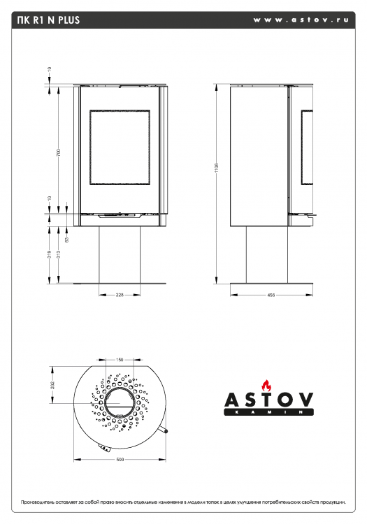 Астов R1 N Plus - это дровяная печь на ножке. Стеклянная дверца с изогнутым стеклом придаёт печи современный вид. Корпус может быть окрашен в чёрный или серый цвет. Топочная камера футерована вермикулитом. Система обдува стекла оставляет его чистым от сажи. Присутствует подача воздуха и на вторичный и на третичный дожиг, удобный механизм закрывания двери, полная регулировка горения.
