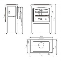 Возможные опции: крышка-лючок для верхней загрузки + полуотвод для вертикального заднего подключения к дымовому каналу.