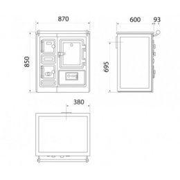 Фронтальная загрузка дров. Дверца со стеклокерамикой, выдерживающей температуру до 800оС.