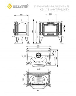 - Расположение дымохода сзади, патрубок можно развернуть вверх