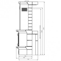 Пристенная печь-камин с верхним или задним подключением дымохода. Вставка - SK 2002 (включена в стоимость).
